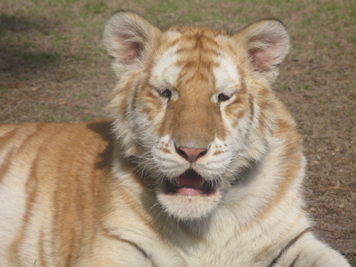 Sometimes called the “strawberry tiger” due to the coloration, this is a color variety of the Bengal tiger and not a separate species. Though not a normally found coloration in the wild, India has records of wild golden tigers which date back as far as the early 1900’s Records indicate that there are less than 30 golden tabby tigers in the world.