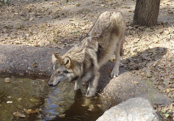 Wolves generally mate for life and typically only the alpha pair will mate in the pack. Packs can range in size from 2 to 35 members. Packs with more members feed on larger prey including moose, caribou and other “mega-vertebrates.” Smaller packs feed on mice, rabbits, deer and similar-sized prey. Howling is used to communicate with other wolves and can be heard for many miles on a calm night.